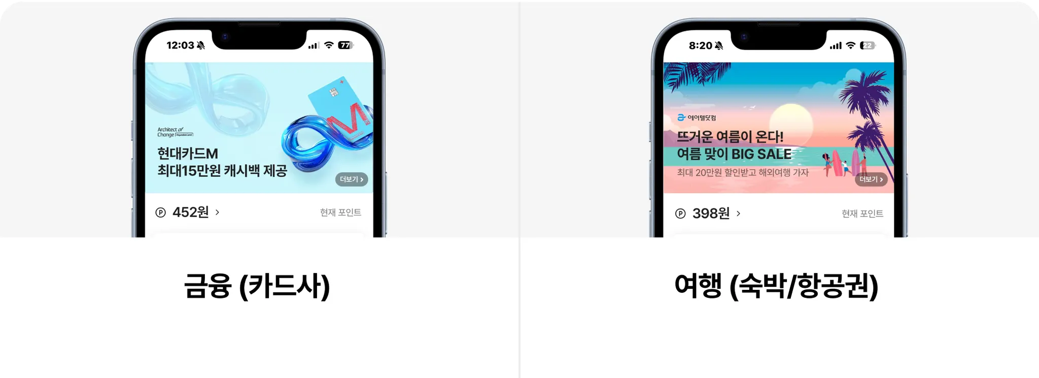 패션, 뷰티, 컨텐츠(OTT), 엔터테인먼트, 금융, 디지털/가전, 병의원, 여행, 교육, 식품, 의약품 등
