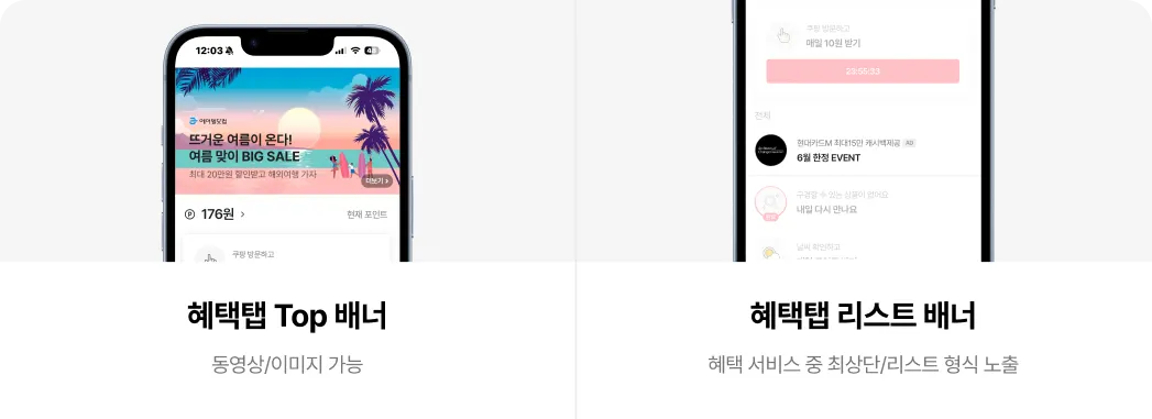 혜택/검색/마이 페이지 등 결제 유저가 많이 방문하는 지면에 노출할 수 있습니다.