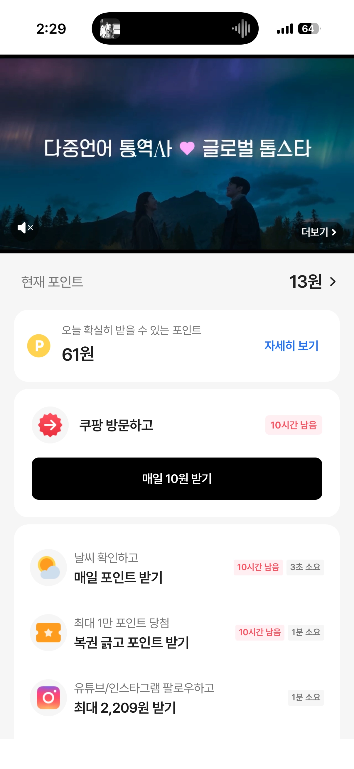 혜택탭 Top 배너 : 동영상형