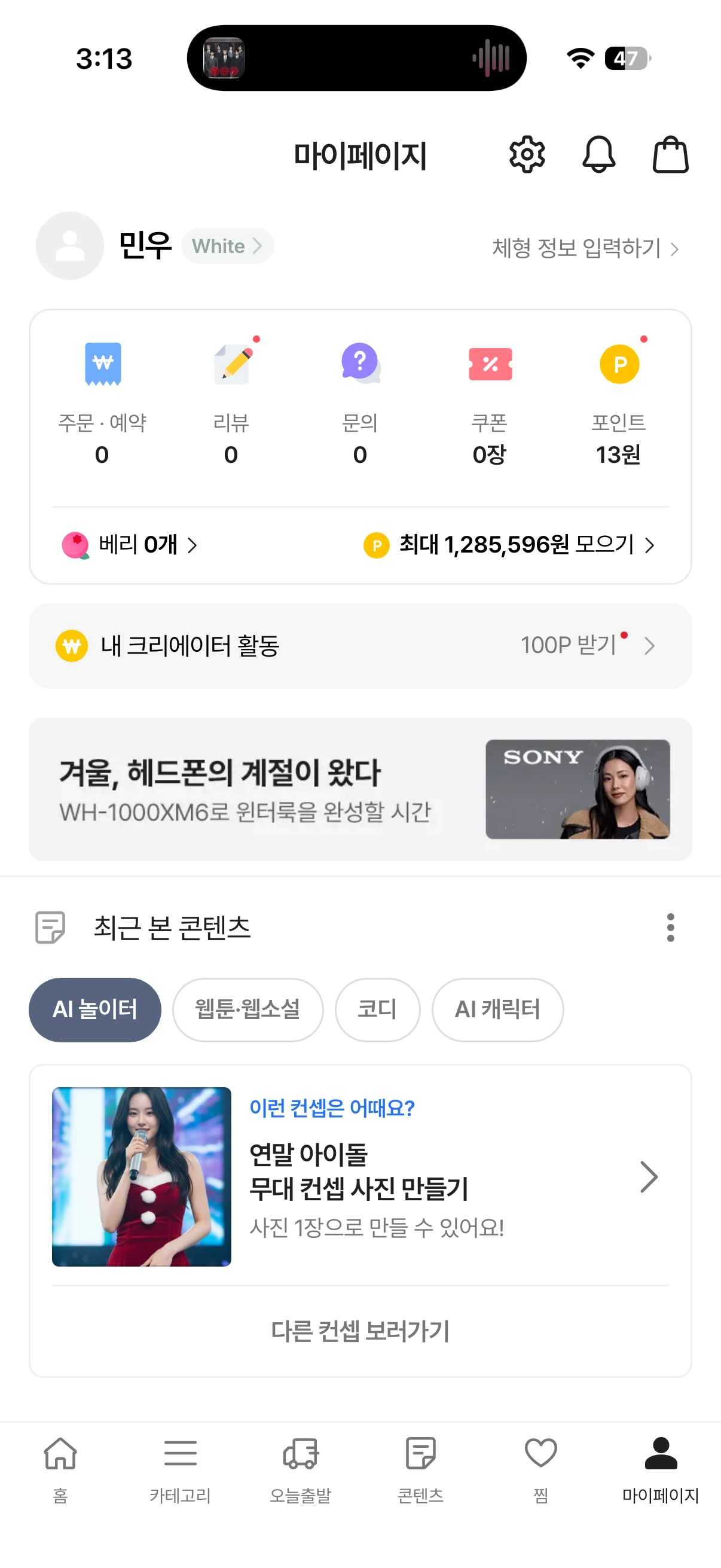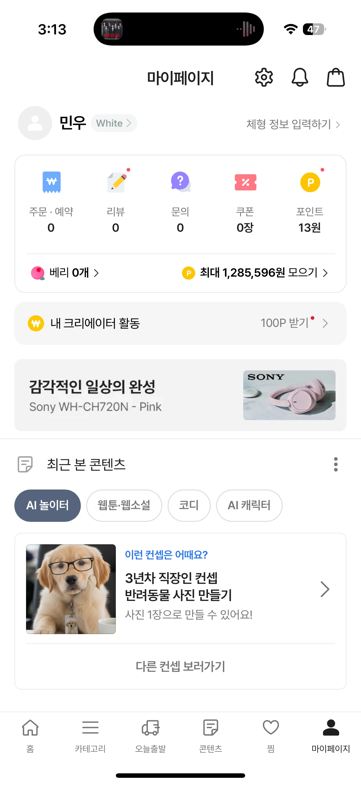 검색 페이지 배너 마이 페이지 배너