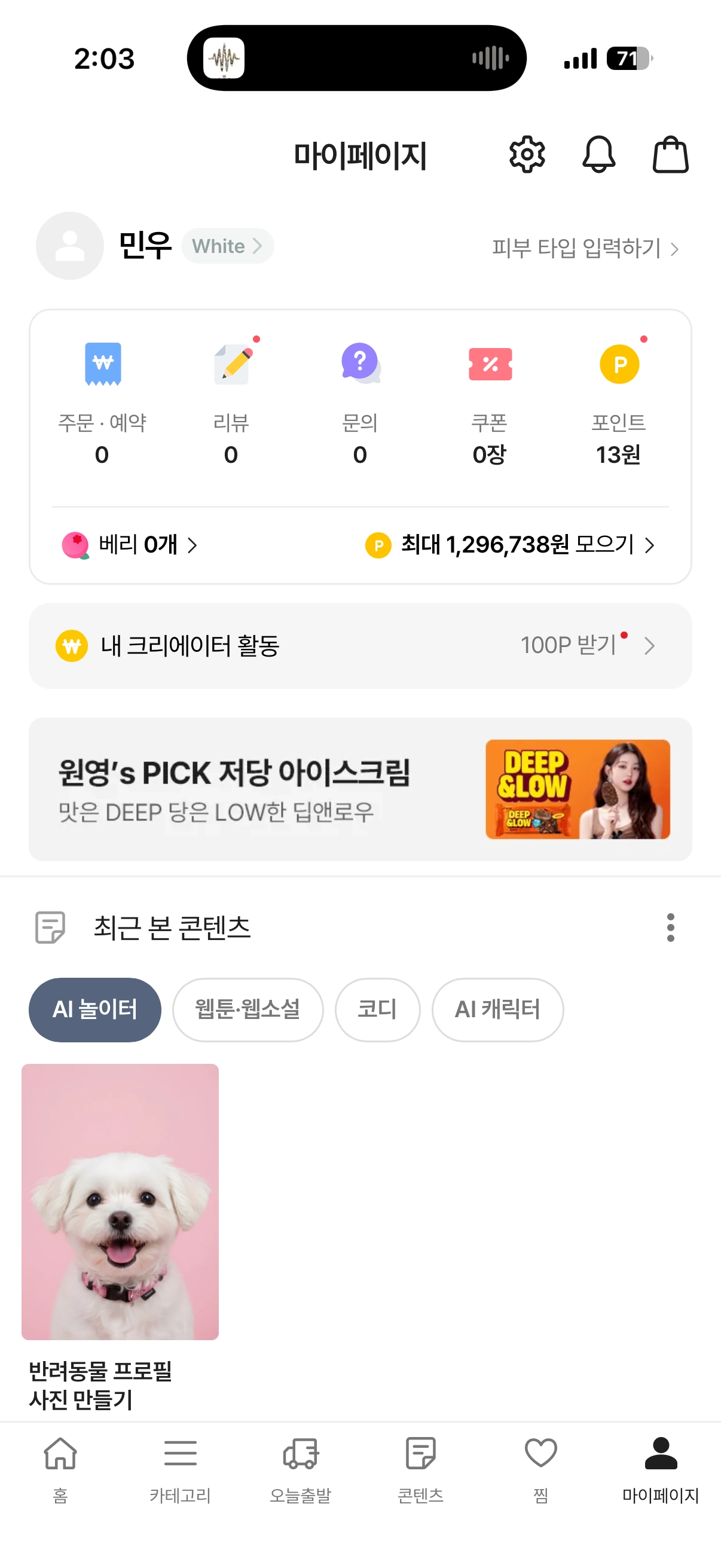혜택 탭 Top 배너 : 이미지 형 마이 페이지 배너 검색 페이지 배너
