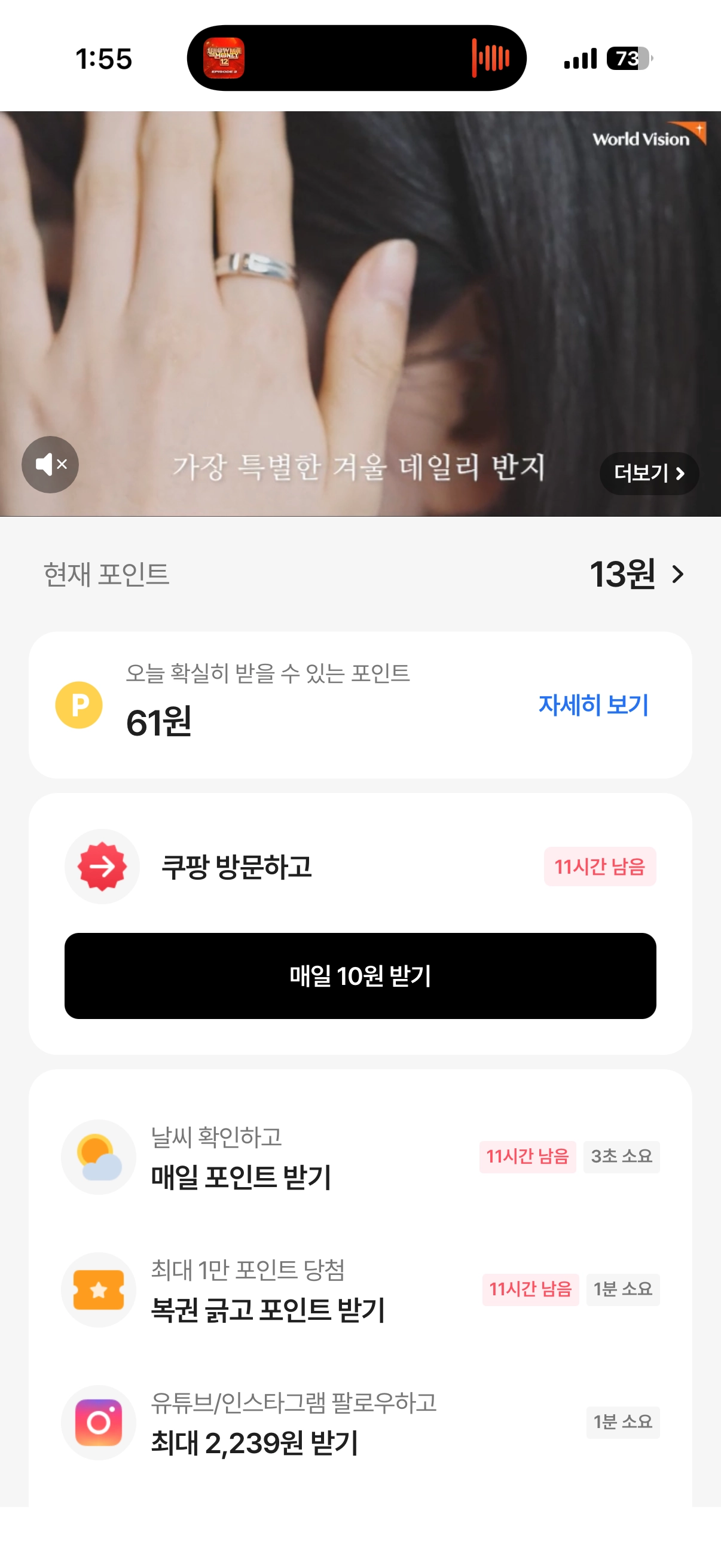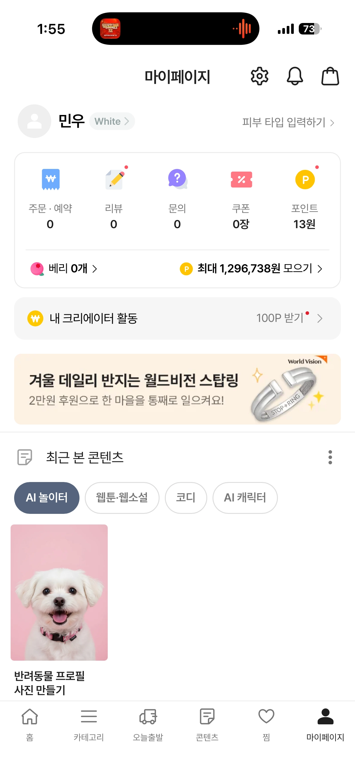 혜택 탭 Top 배너 : 동영상 형 마이 페이지 배너