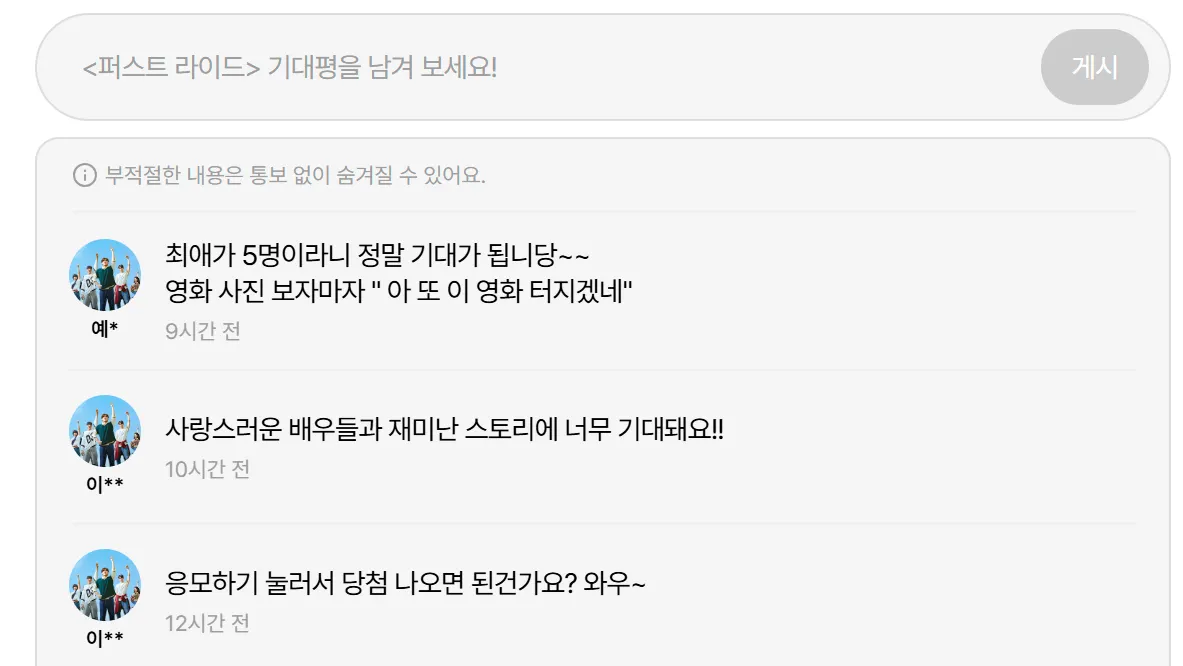 * 이벤트 유형 : 시사회 초대, 관람권, OTT 구독권 당첨 이벤트 가능