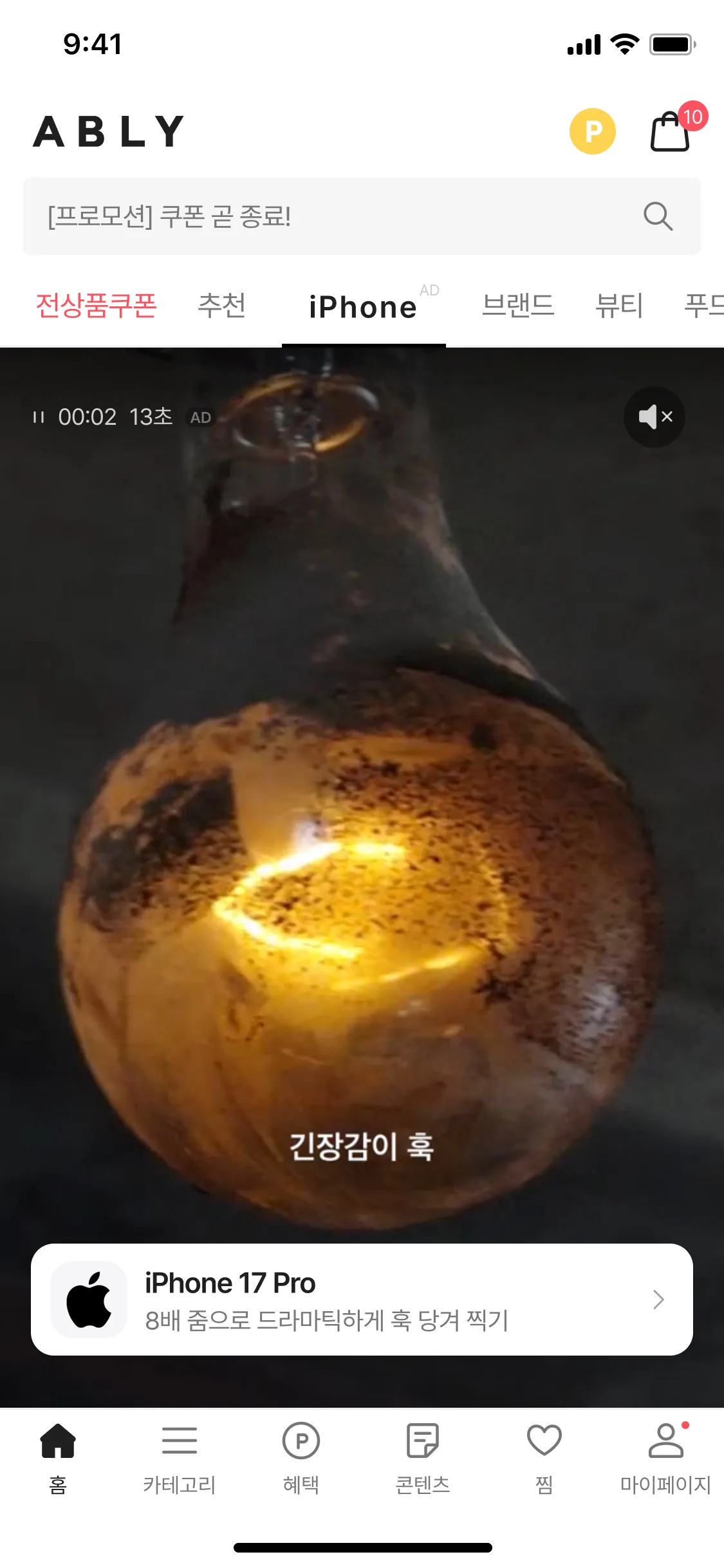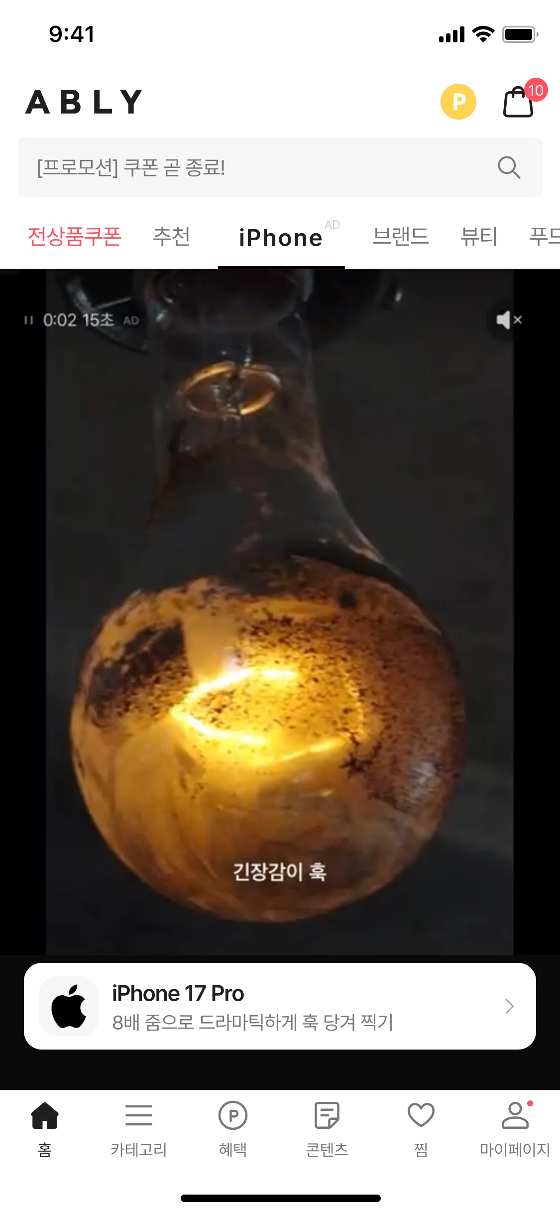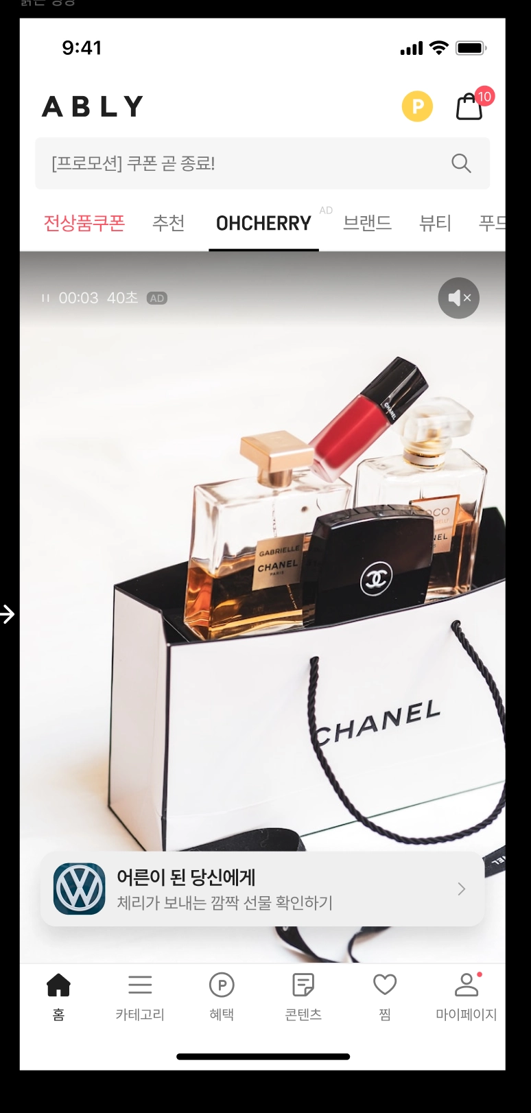 브랜드 로고 클릭 시 전면 영상 광고 플레이 (브랜드 단독 전면 활용 SOV 100%)