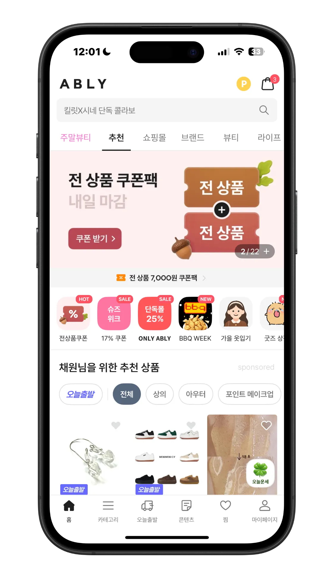 에이블리 앱 내에서 광고 노출 뿐만 아니라,