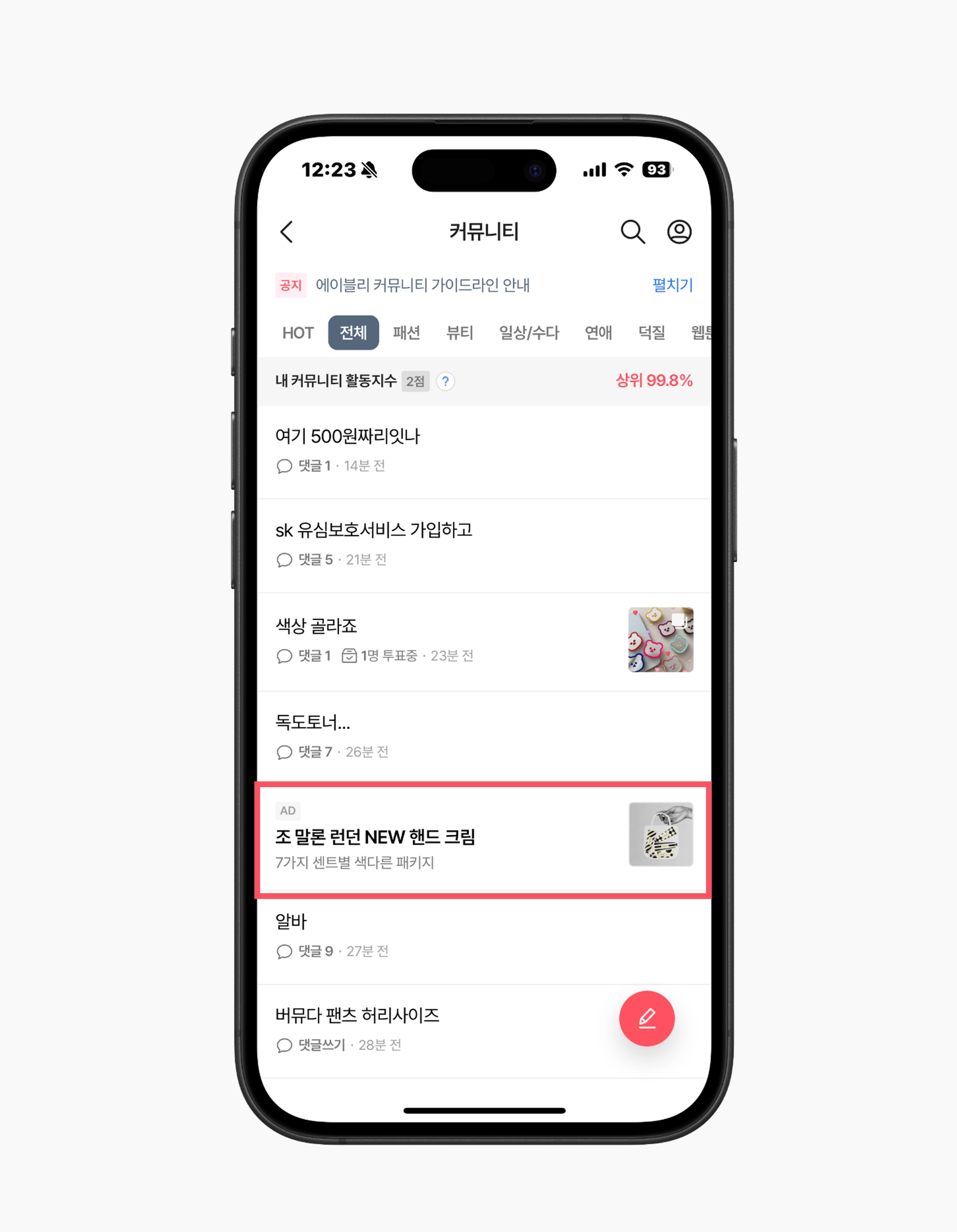 게재 위치 | 커뮤니티 리스트 중단 |