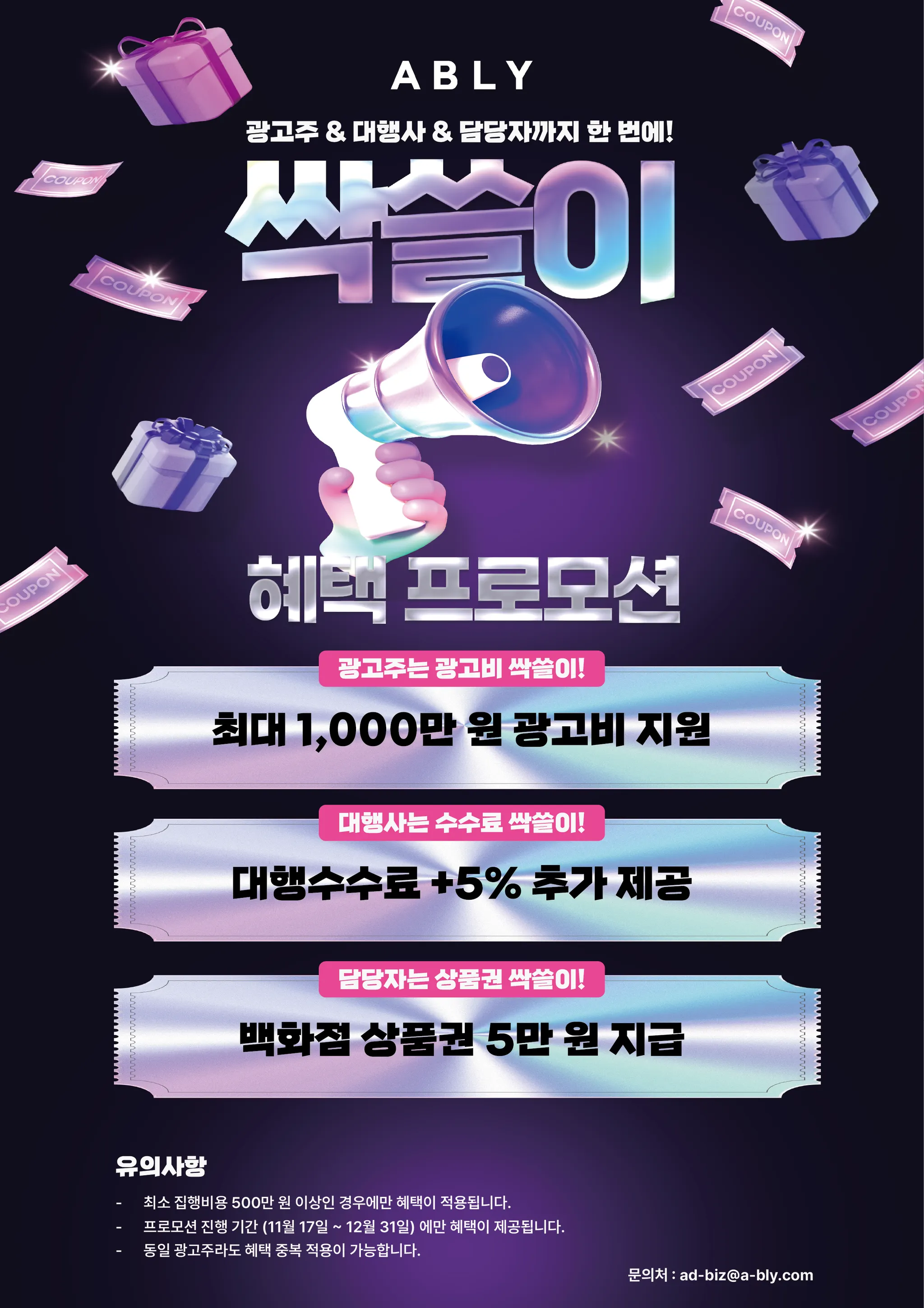 광고주, 대행사/렙사, 담당자 모두 혜택을 싹 쓸어가세요~!